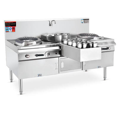经营产品 厨房商用灶、猛火灶、大锅灶、节能灶、商用电磁炉、蒸饭柜、消毒柜、海鲜蒸柜、烤箱、餐车、调味车、操作台、食品柜、洗刷台、开水器、电饼铛、和面机、馒头机、货架、四门冷柜、保鲜工作台;也可根据用户需求整体设计厨房;专业厨房排烟,安装设计与改造,异形不锈钢加工等。